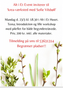 « Alle Begivenheder Denne begivenhed er allerede afholdt. Krea-værksted med Sofie Vilsbøll marts 23 @ 18:30 - 21:00 « Mix Fitness Herre gymnastik » Add to calendar Google kalender iCalendar Outlook 365 Outlook Live Detaljer Dato: marts 23 Tidspunkt: 18:30 - 21:00 Sted Klubhuset Nejrupvej 2, 7620 Lemvig Lemvig, 7620 Danmark + Google Maps Telefon: +4529638527 Arrangør Alt i Et Event